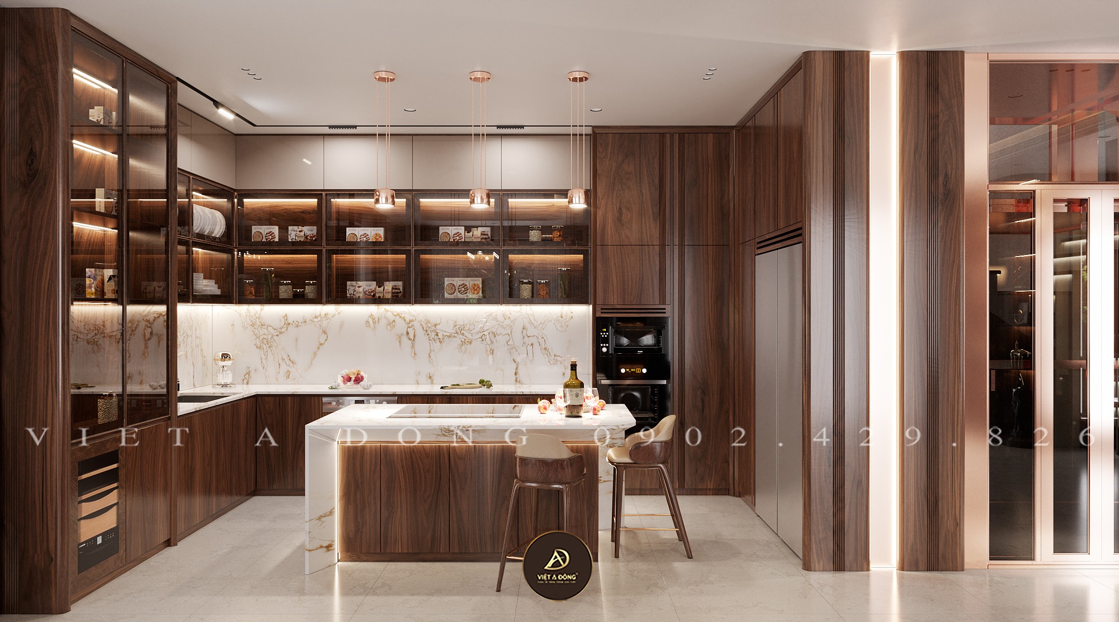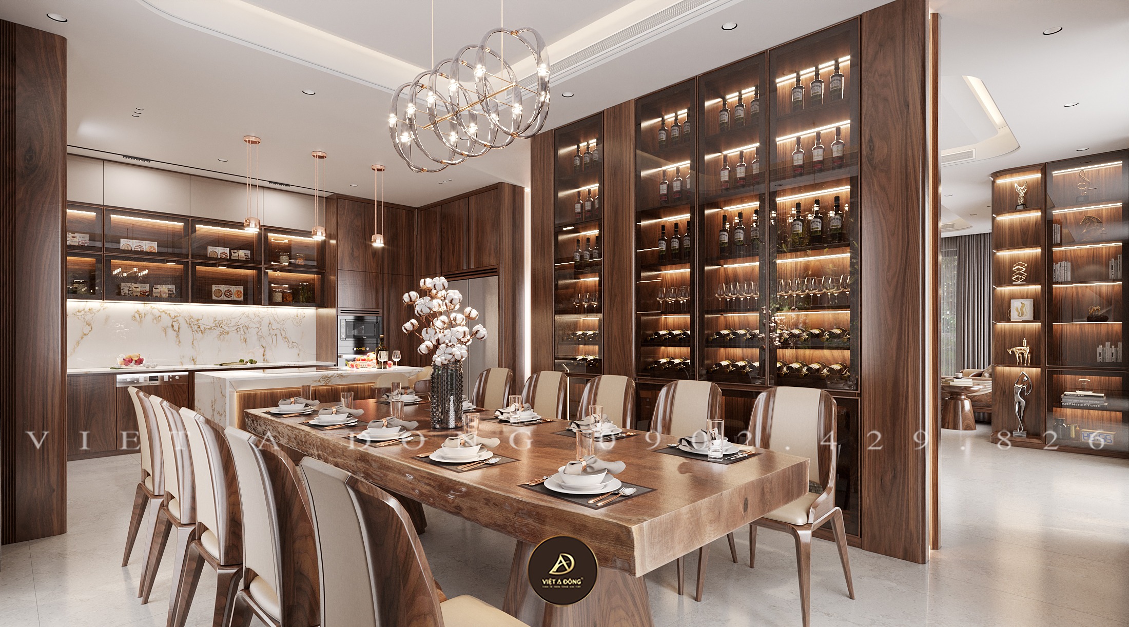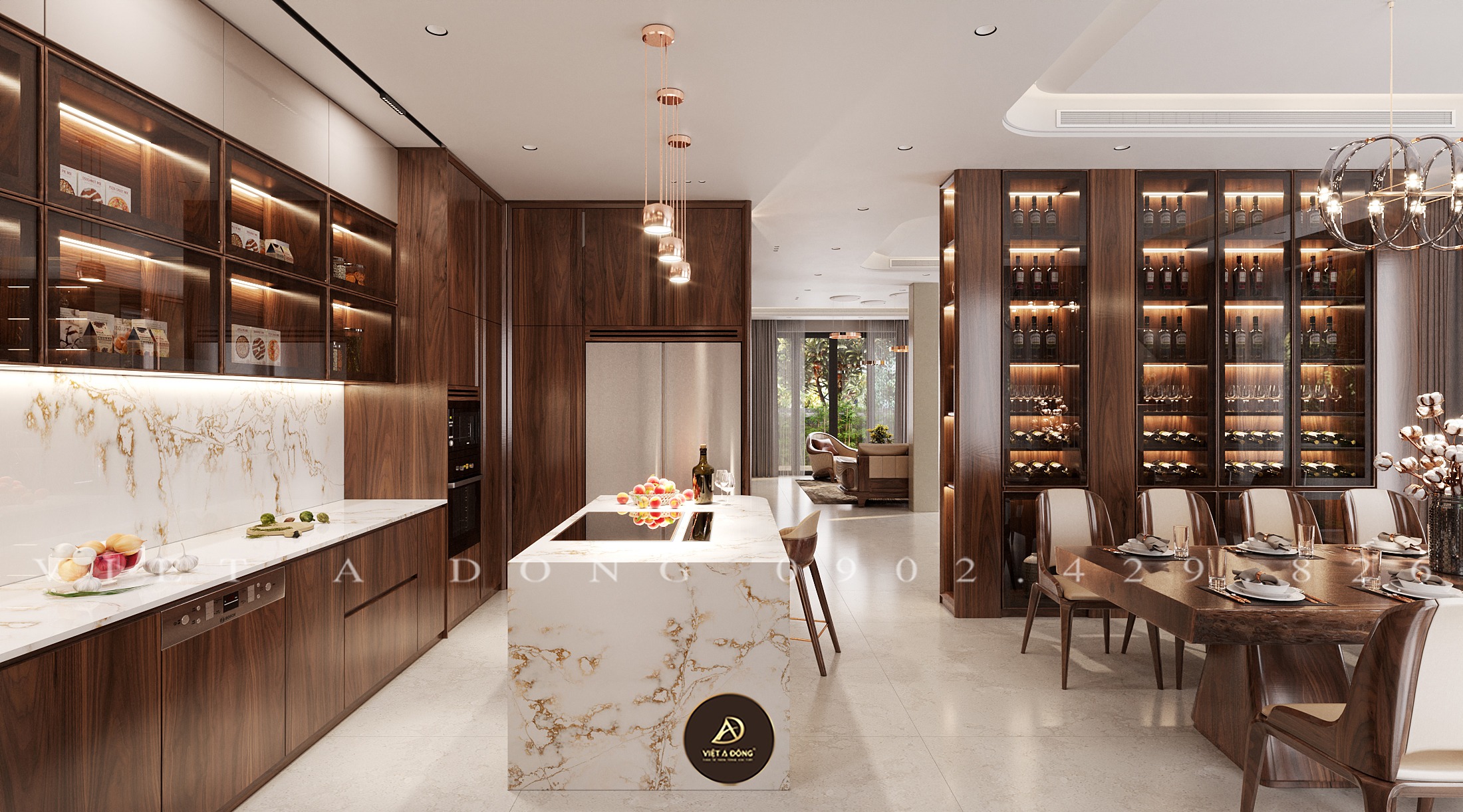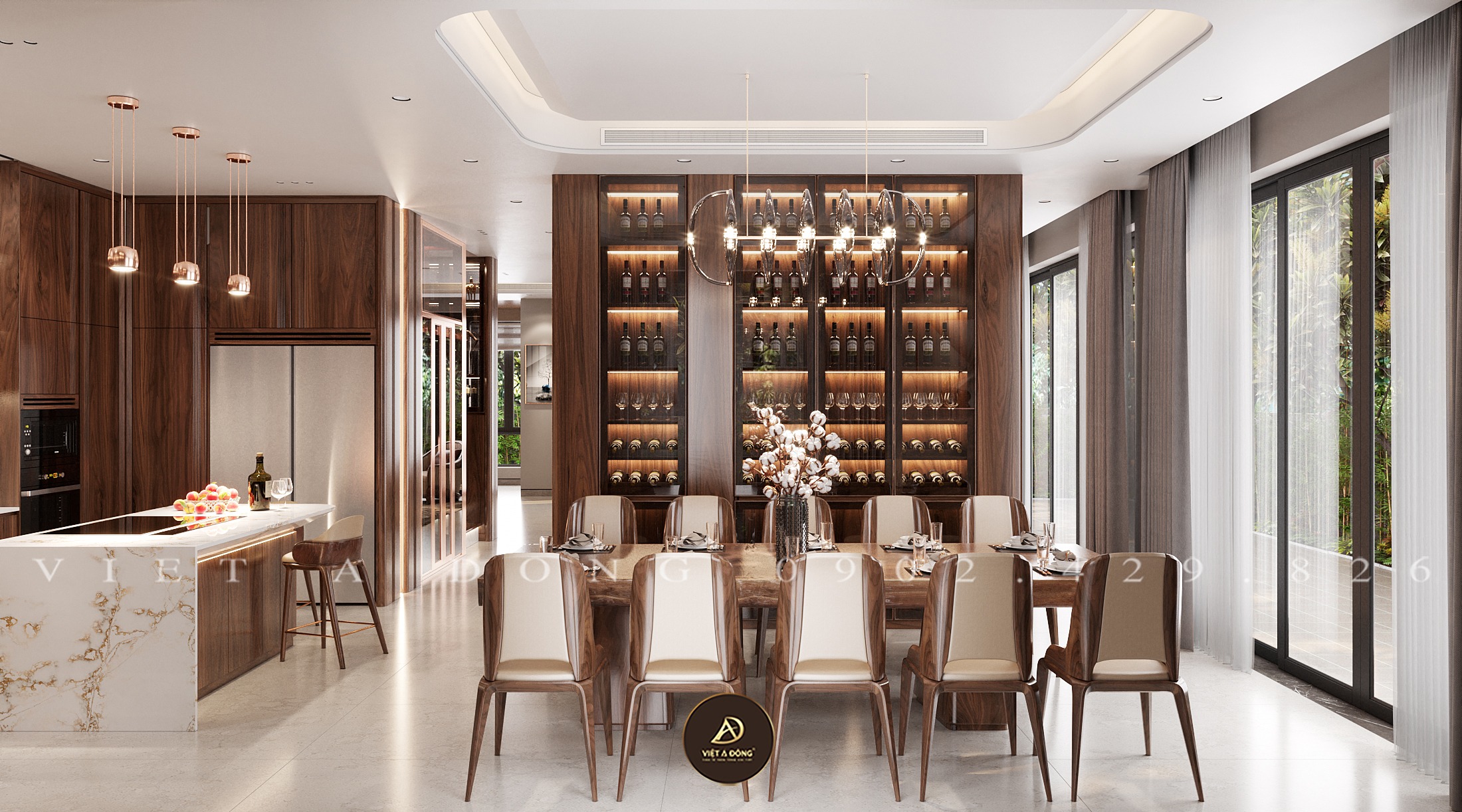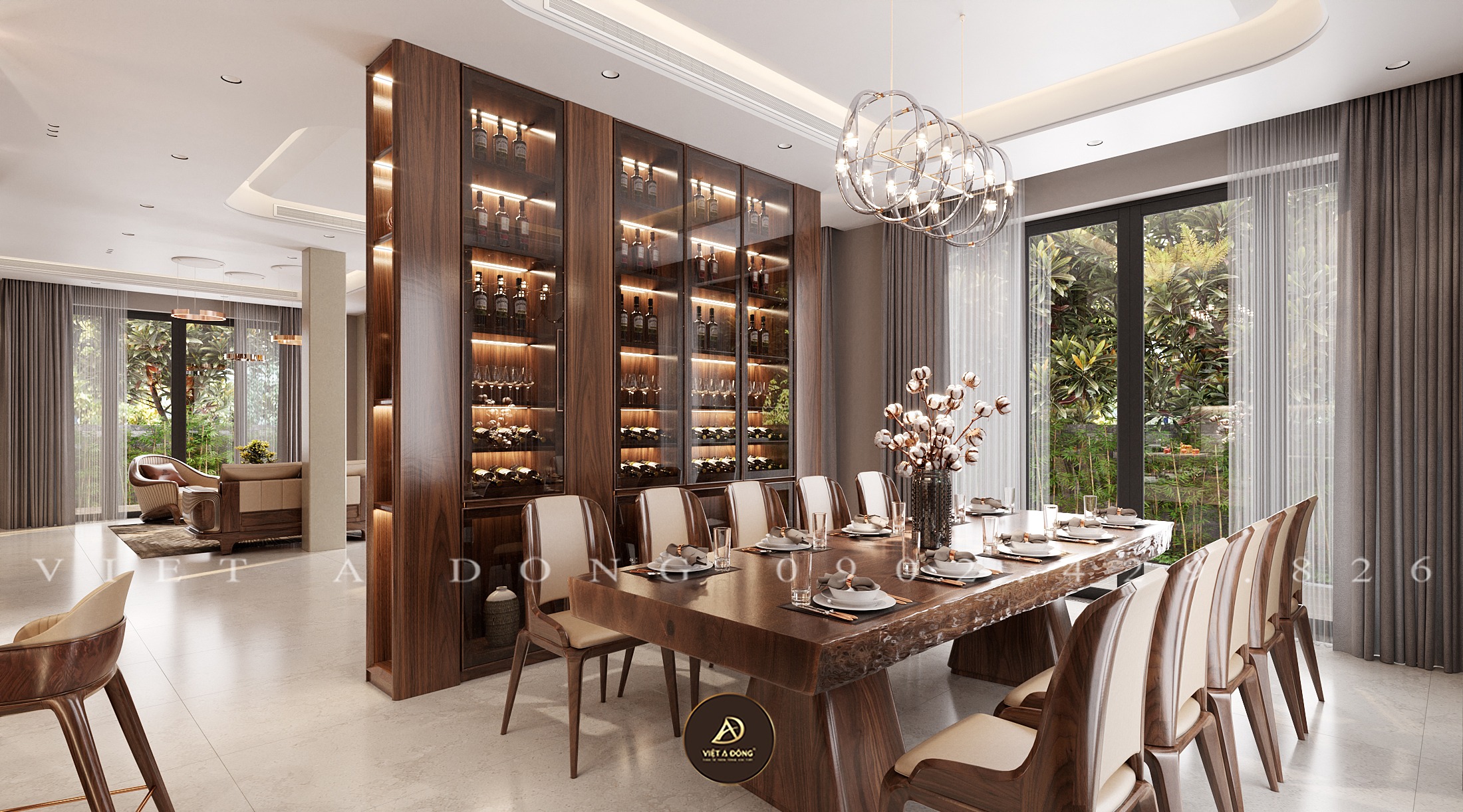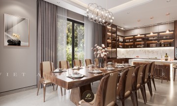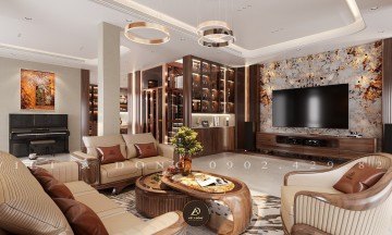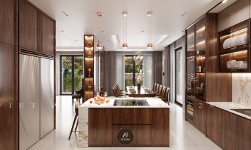 Thiết kế - Thi công nội thất biệt thự gỗ óc chó tại Gamuda - Chị Thu