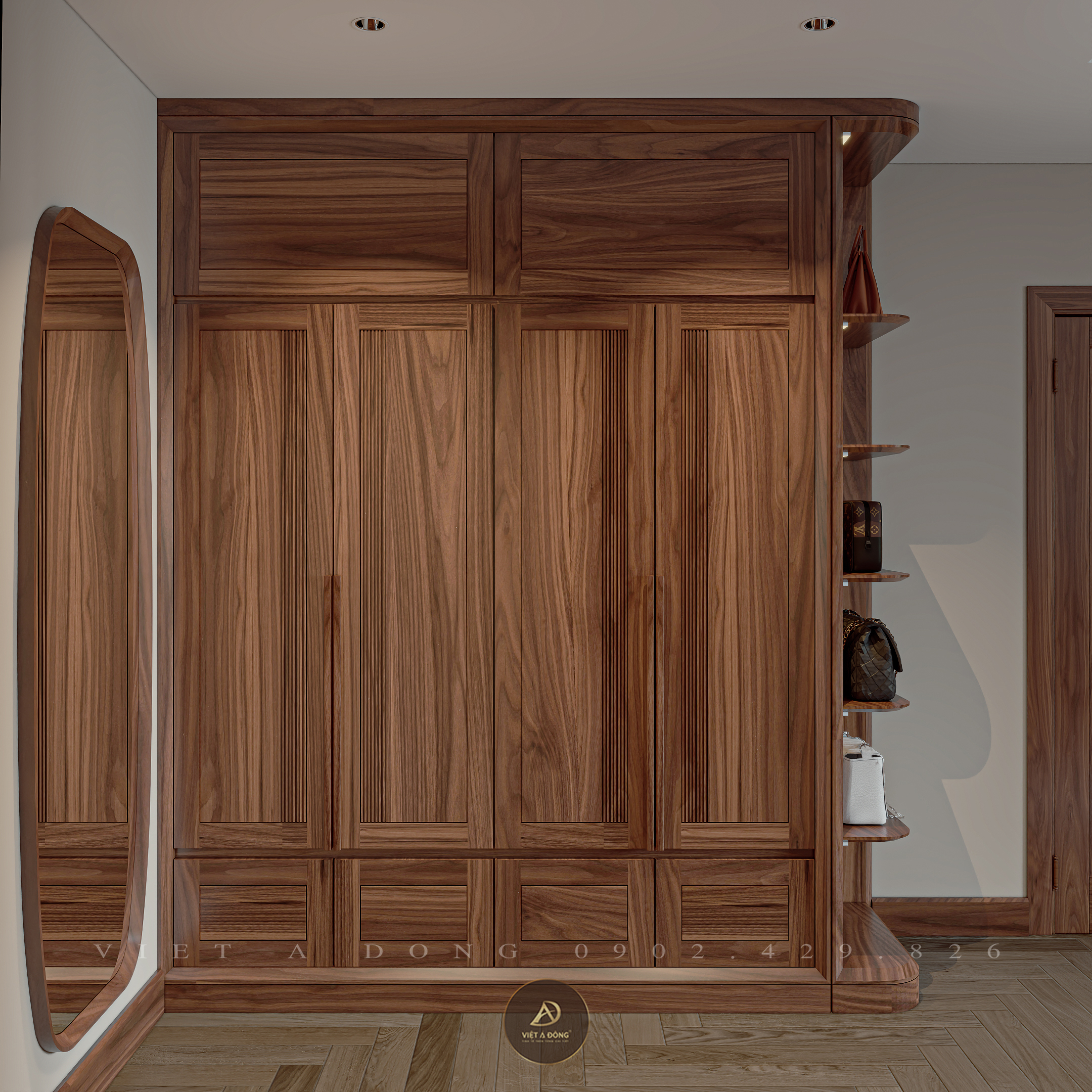 - Vật liệu chủ đạo: Gỗ óc chó